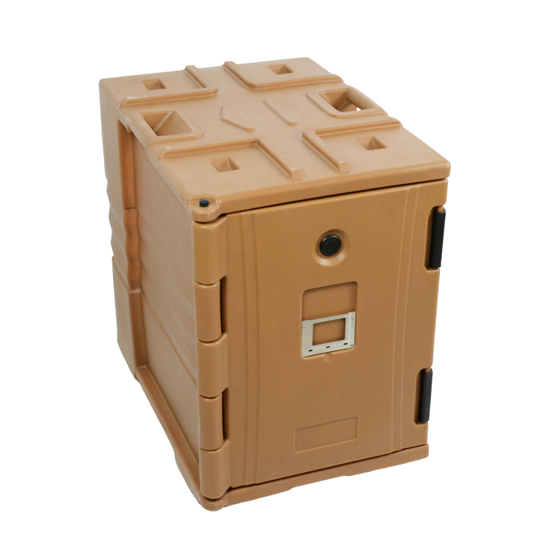 堅固耐用的尼龍鎖扣可以把門穩(wěn)妥鎖定并形成封閉,保證在運輸途中食品的冷熱溫度。 底部有四格小滑輪,同款可疊放,容積相同90L,裝菜單夾,均可做空白LOGO,也可以定做客戶LOGO??膳涮资褂梦夜就栖?。